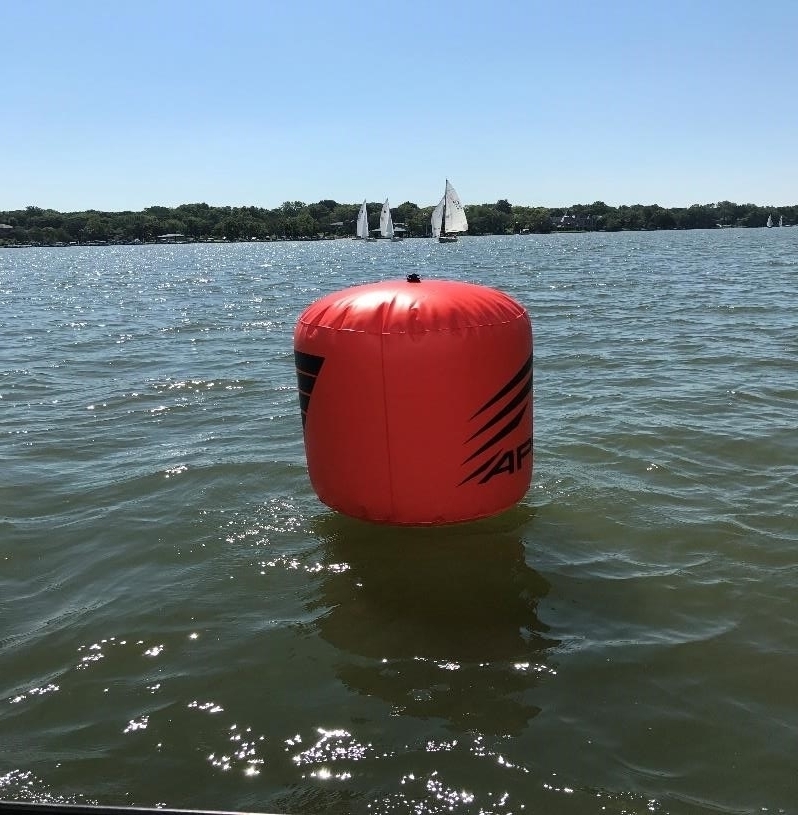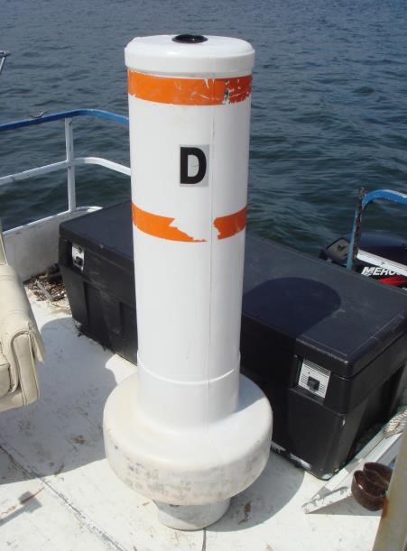 8.1. Marks A, B, C, D, E, & F will be white cylinder buoys with 2 orange stripes or an inflatable orange buoy. An “X” mark will be a round white or orange buoy. See photograph in Section 17.